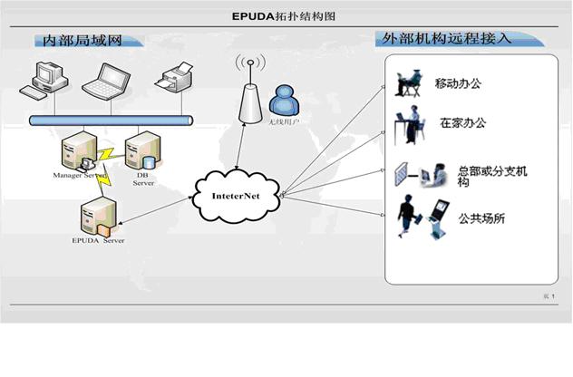 EPUDA公司是国内领先的接入架构解决方案供应商,EPUDA解决方案满足用户访问企业程序的集中管理、远程分支机构连接、移动办公、企业程序整合的需求,为客户构建一个安全可靠、集中管理、带宽可控的访问平台。保持信息系统网络架构现状和软硬件资源的同时,使用户可以采用任何设备,随时随地、轻松便捷、安全可靠地连接企业应用,达到优化资源、集中管理、免除升级、保护投资、方便扩展的目的。 EPUDA公司的远程接入平台-标准版为国内的中小型企业远程接入的首选平台,它提供方便的系统接入的配置管理工具,能够降低中小型公司系统远程接入的成本,具有快速搭建远程接入平台的能力,降低公司的IT维护成本,现在EPUDA公司远程接入平台和国内企业应用的解决方案提供商合作,共同开拓中低端用户的远程接入市场。